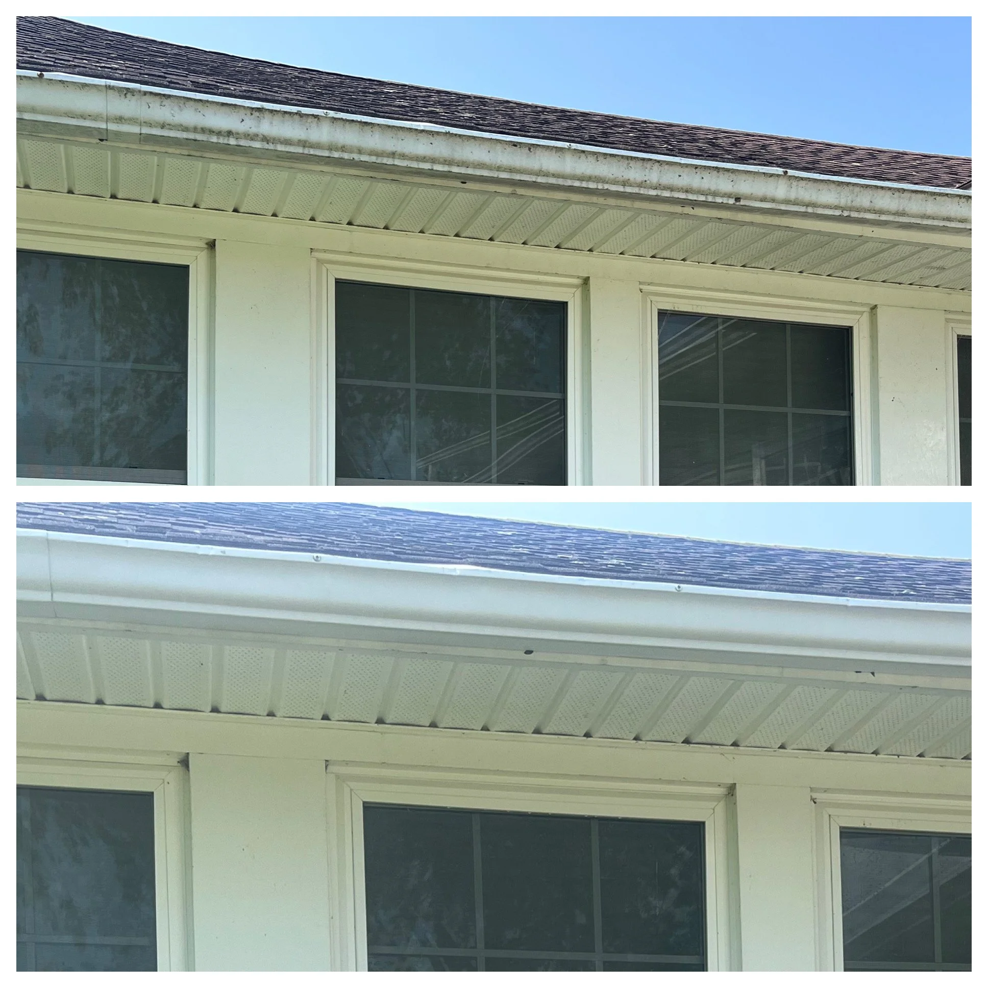 Gutter faces can become dirty from roof runoff and other organic materials. Most commonly “tiger stripes” can form leaving unsightly black marks all over the outside of your gutters. Keeping your gutters clean makes for a better appearance sure, but it can also ensure that they operate properly. Contact us for a FREE quote on cleaning your gutters!